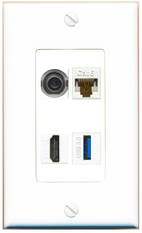 RiteAV 3.5mm CAT6 HDMI USB-3 Wall Plate Decorative [White]