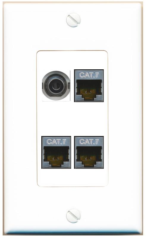 RiteAV 3.5mm 3 CAT7 Wall Plate Decorative [White]