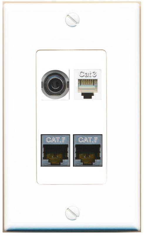 RiteAV 3.5mm 2 CAT7 PHONE Wall Plate Decorative [White]