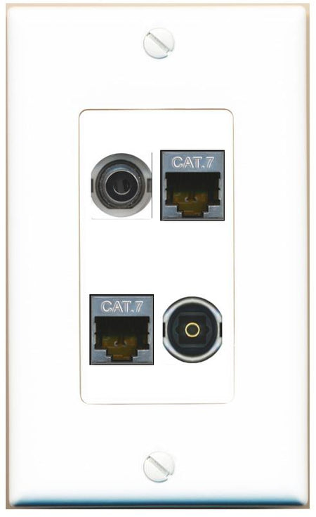 RiteAV 3.5mm 2 CAT7 TOSLINK Wall Plate Decorative [White]
