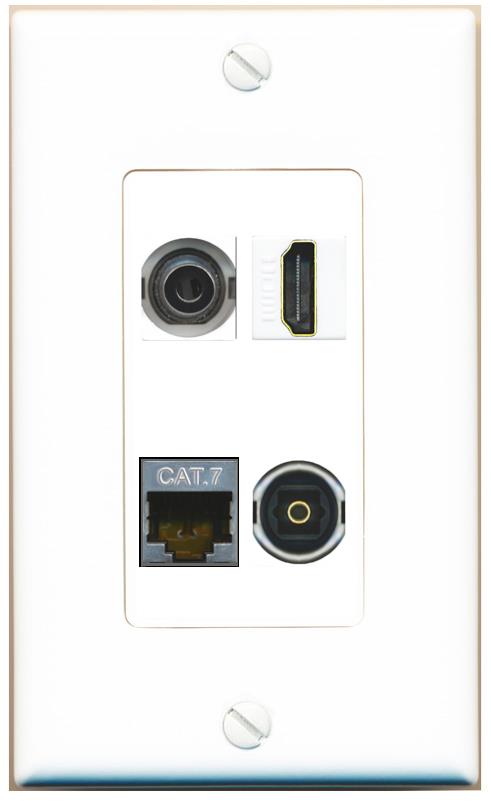 RiteAV 3.5mm CAT7 HDMI TOSLINK Wall Plate Decorative [White]