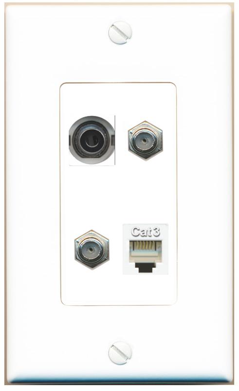 RiteAV 3.5mm 2 COAX PHONE Wall Plate Decorative [White]