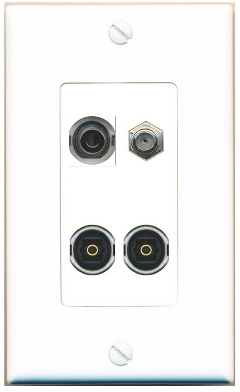 RiteAV 3.5mm COAX 2 TOSLINK Wall Plate Decorative [White]