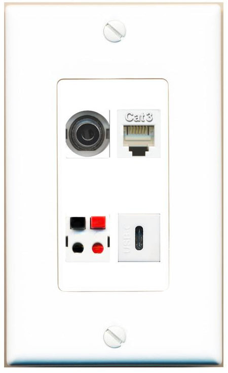 RiteAV 3.5mm PHONE SPEAKER USBC Wall Plate Decorative [White]