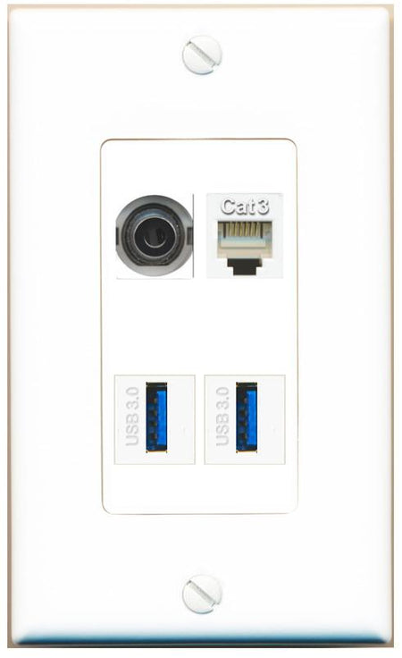 RiteAV 3.5mm PHONE 2 USB-3 Wall Plate Decorative [White]