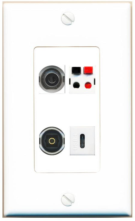 RiteAV 3.5mm SPEAKER TOSLINK USBC Wall Plate Decorative [White]