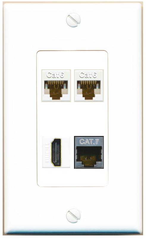 RiteAV 2 CAT6 CAT7 HDMI Wall Plate Decorative [White]