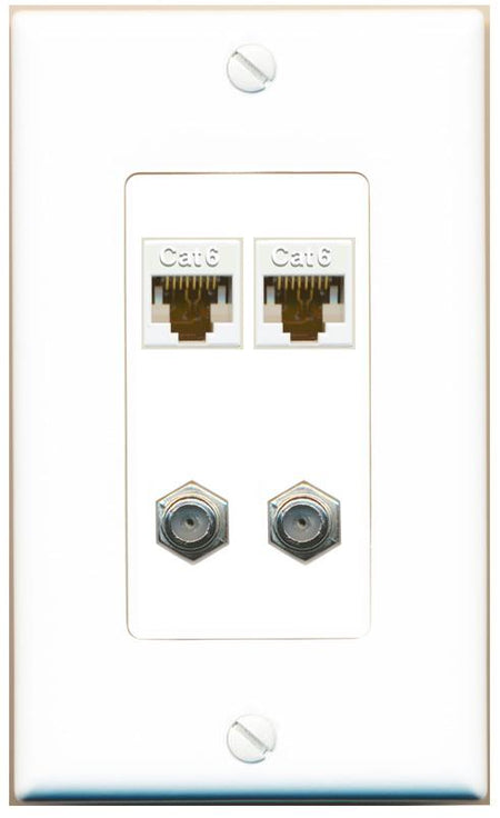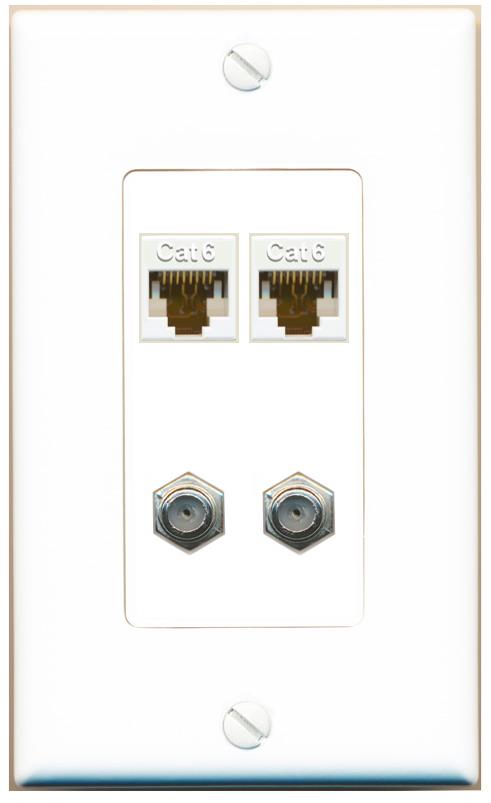 RiteAV 2 CAT6 2 COAX Wall Plate Decorative [White]