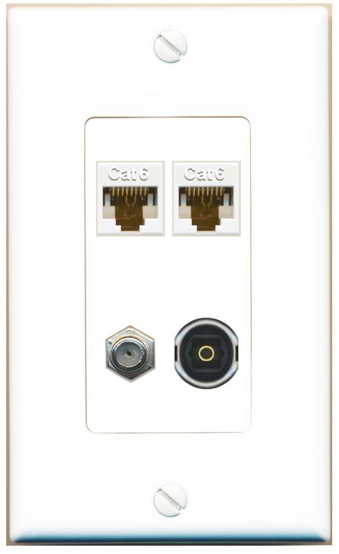 RiteAV 2 CAT6 COAX TOSLINK Wall Plate Decorative [White]
