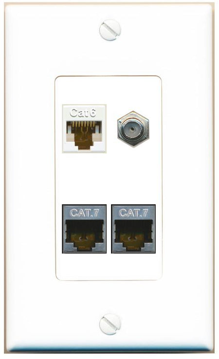 RiteAV CAT6 2 CAT7 COAX Wall Plate Decorative [White]