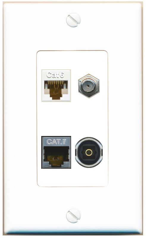 RiteAV CAT6 CAT7 COAX TOSLINK Wall Plate Decorative [White]