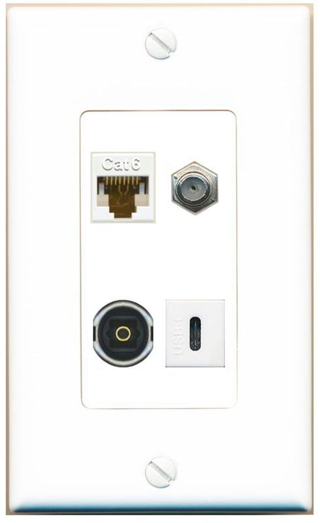 RiteAV CAT6 COAX TOSLINK USBC Wall Plate Decorative [White]
