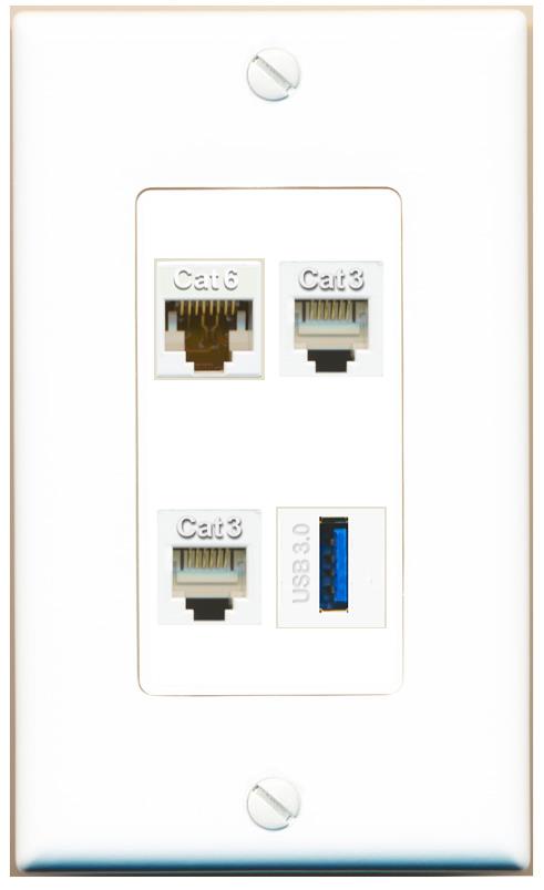 RiteAV CAT6 2 PHONE USB-3 Wall Plate Decorative [White]