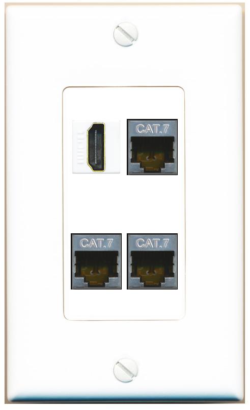 RiteAV 3 CAT7 HDMI Wall Plate Decorative [White]