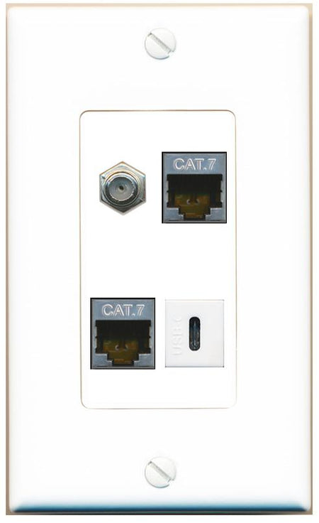 RiteAV 2 CAT7 COAX USBC Wall Plate Decorative [White]