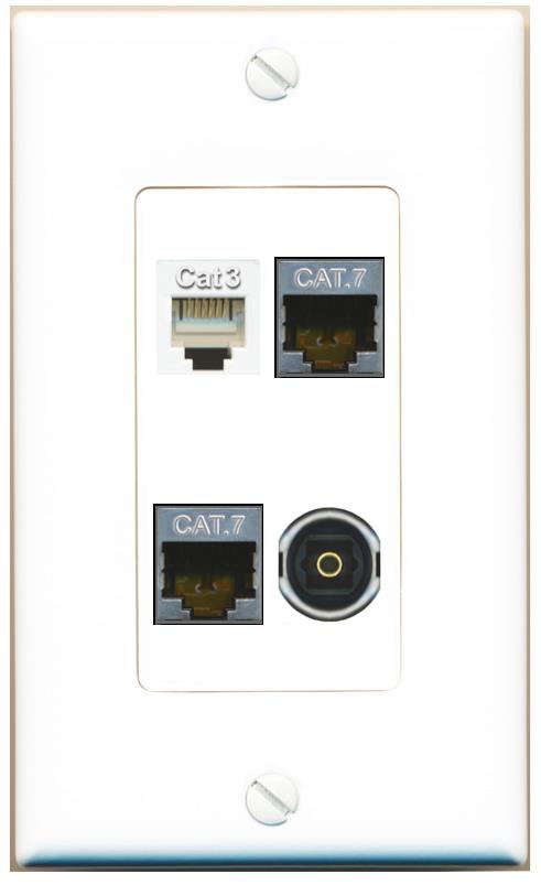 RiteAV 2 CAT7 PHONE TOSLINK Wall Plate Decorative [White]
