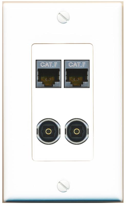RiteAV 2 CAT7 2 TOSLINK Wall Plate Decorative [White]