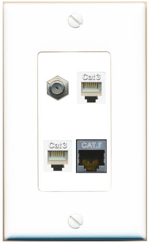 RiteAV CAT7 COAX 2 PHONE Wall Plate Decorative [White]