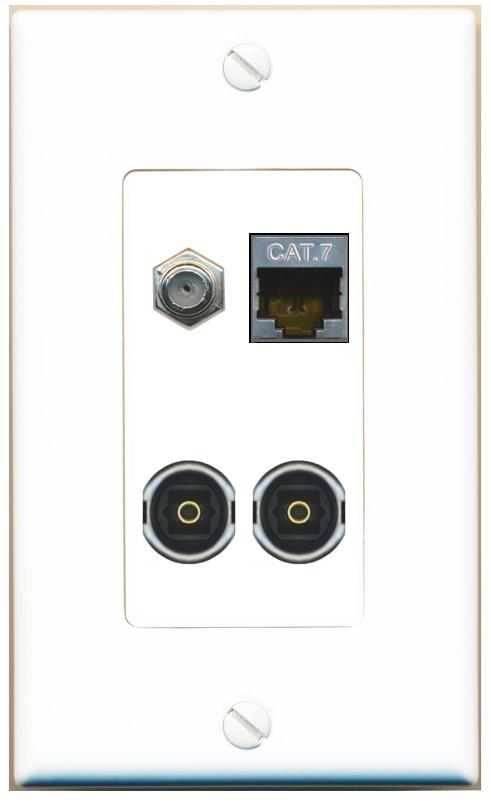 RiteAV CAT7 COAX 2 TOSLINK Wall Plate Decorative [White]