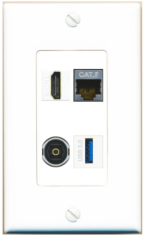 RiteAV CAT7 HDMI TOSLINK USB-3 Wall Plate Decorative [White]