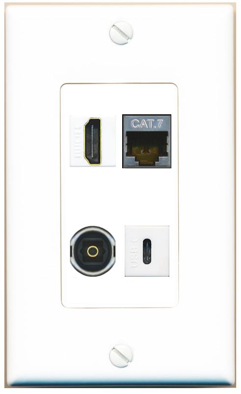 RiteAV CAT7 HDMI TOSLINK USBC Wall Plate Decorative [White]