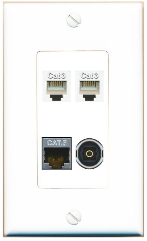 RiteAV CAT7 2 PHONE TOSLINK Wall Plate Decorative [White]