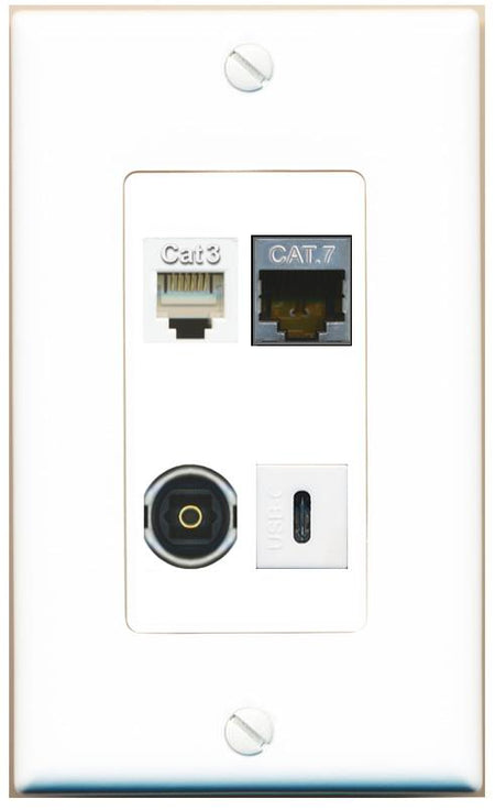 RiteAV CAT7 PHONE TOSLINK USBC Wall Plate Decorative [White]