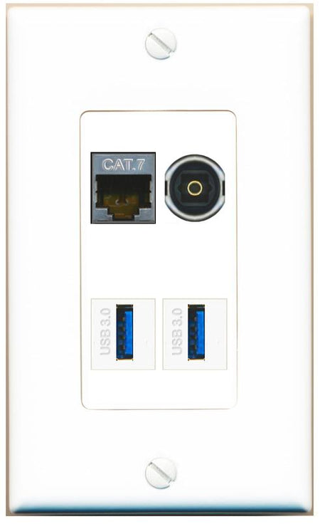 RiteAV CAT7 TOSLINK 2 USB-3 Wall Plate Decorative [White]