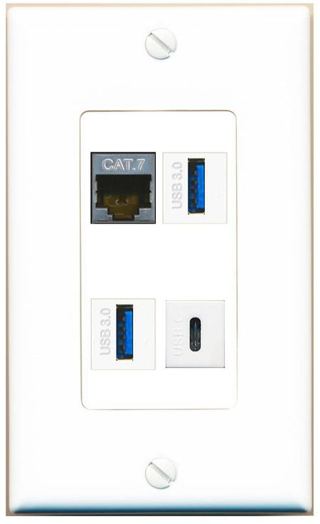 RiteAV CAT7 2 USB-3 USBC Wall Plate Decorative [White]