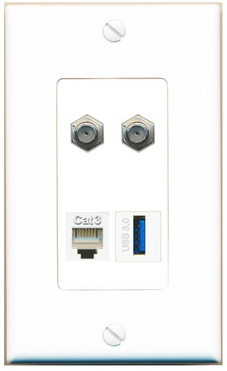 RiteAV 2 COAX PHONE USB-3 Wall Plate Decorative [White]