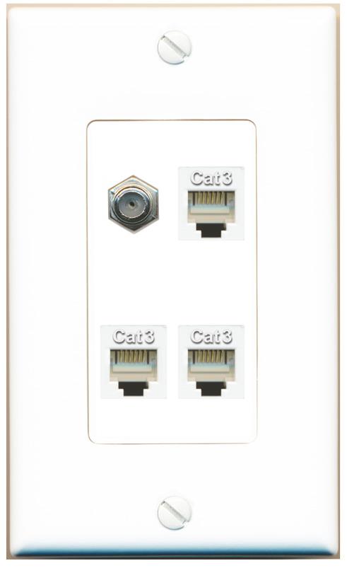 RiteAV COAX 3 PHONE Wall Plate Decorative [White]