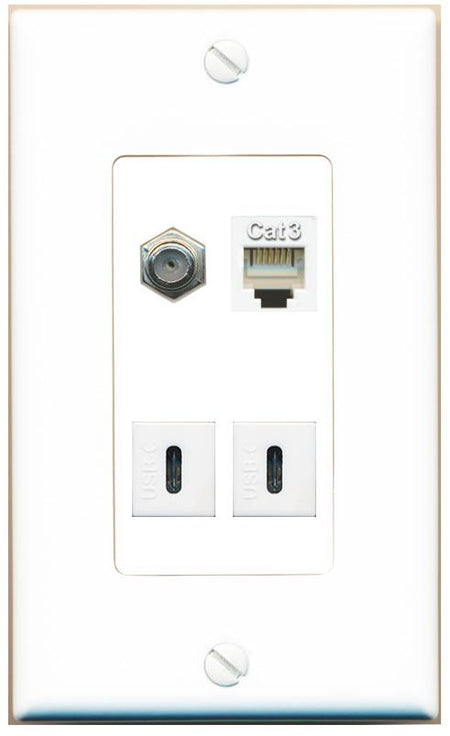 RiteAV COAX PHONE 2 USBC Wall Plate Decorative [White]