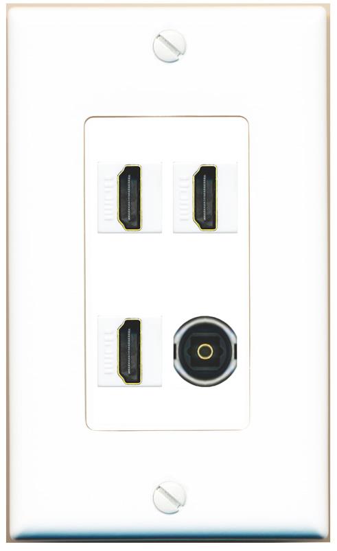 RiteAV 3 HDMI TOSLINK Wall Plate Decorative [White]