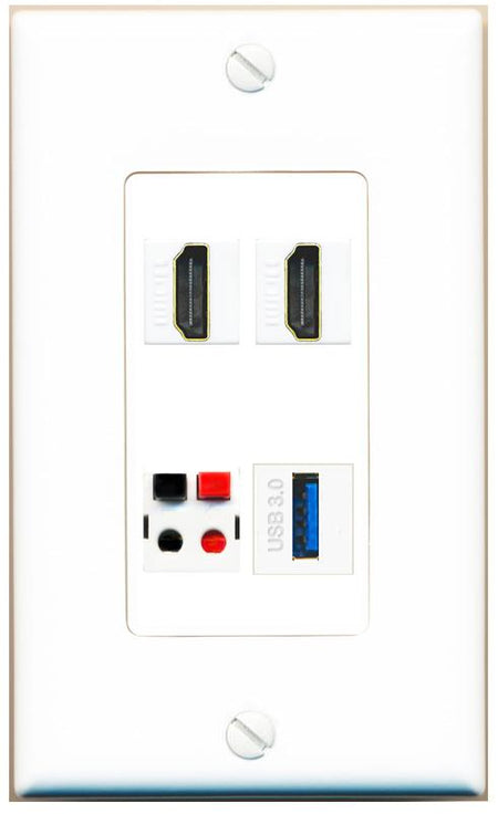 RiteAV 2 HDMI SPEAKER USB-3 Wall Plate Decorative [White]