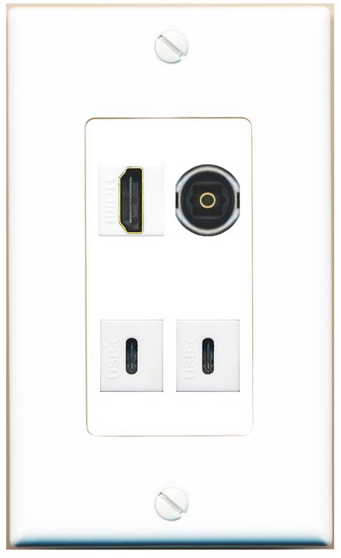 RiteAV HDMI TOSLINK 2 USBC Wall Plate Decorative [White]