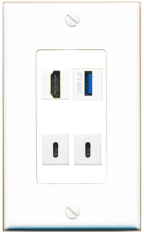 RiteAV HDMI USB-3 2 USBC Wall Plate Decorative [White]