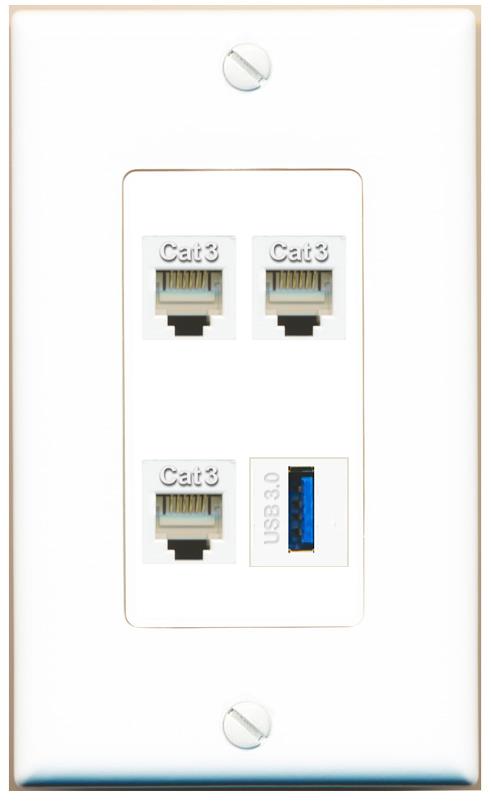 RiteAV 3 PHONE USB-3 Wall Plate Decorative [White]