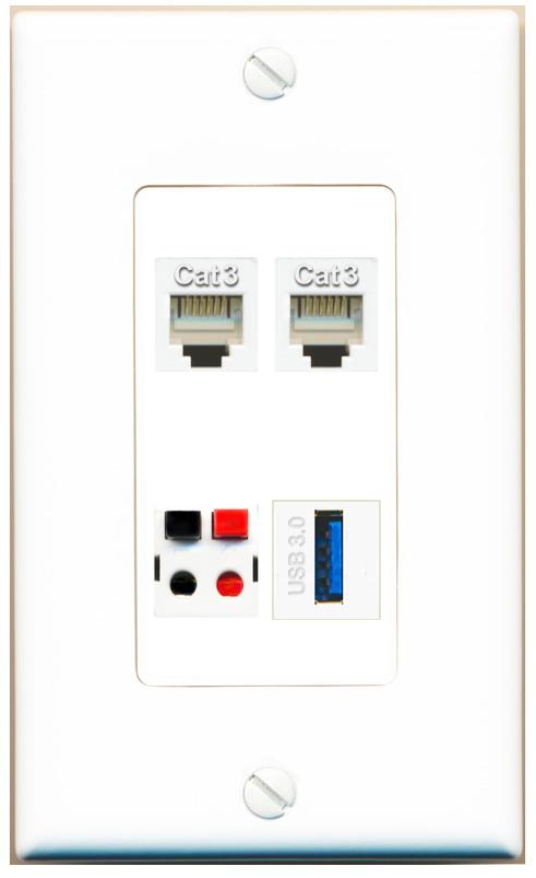 RiteAV 2 PHONE SPEAKER USB-3 Wall Plate Decorative [White]