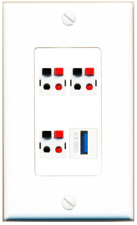 RiteAV 3 SPEAKER USB-3 Wall Plate Decorative [White]