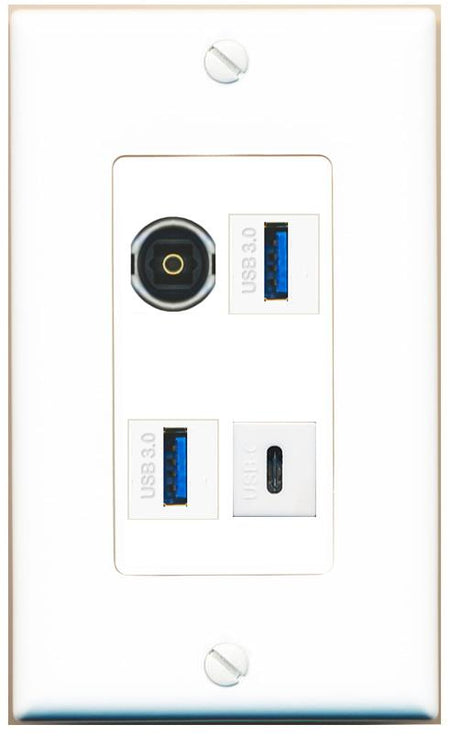 RiteAV TOSLINK 2 USB-3 USBC Wall Plate Decorative [White]