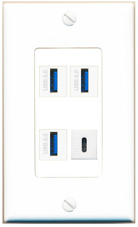RiteAV 3 USB-3 USBC Wall Plate Decorative [White]