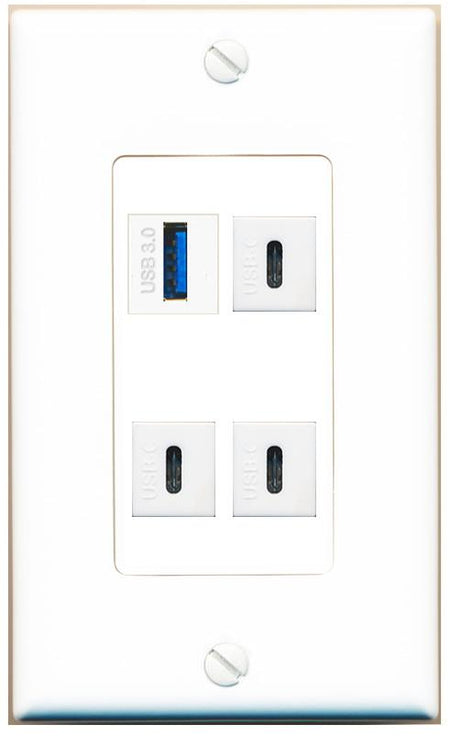 RiteAV USB-3 3 USBC Wall Plate Decorative [White]