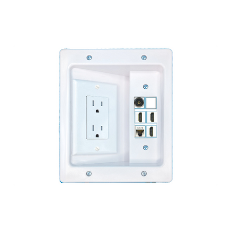 RiteAV Custom 6 Port Recessed Wall Plate Cable Concealer Management Kit with Power Outlet Hides Cords and Cables
