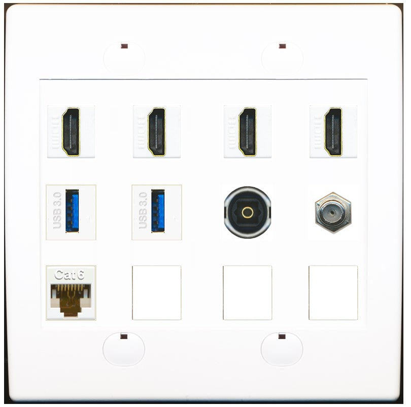 4 HDMI, 2 USB, 1 OPTICAL, 1 Ethernet, 1 Coaxial Wall Plate