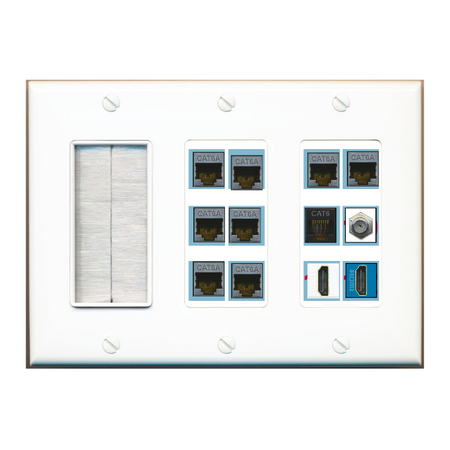 Custom Brush Wall Plate White with up to 12 Keystone Ports