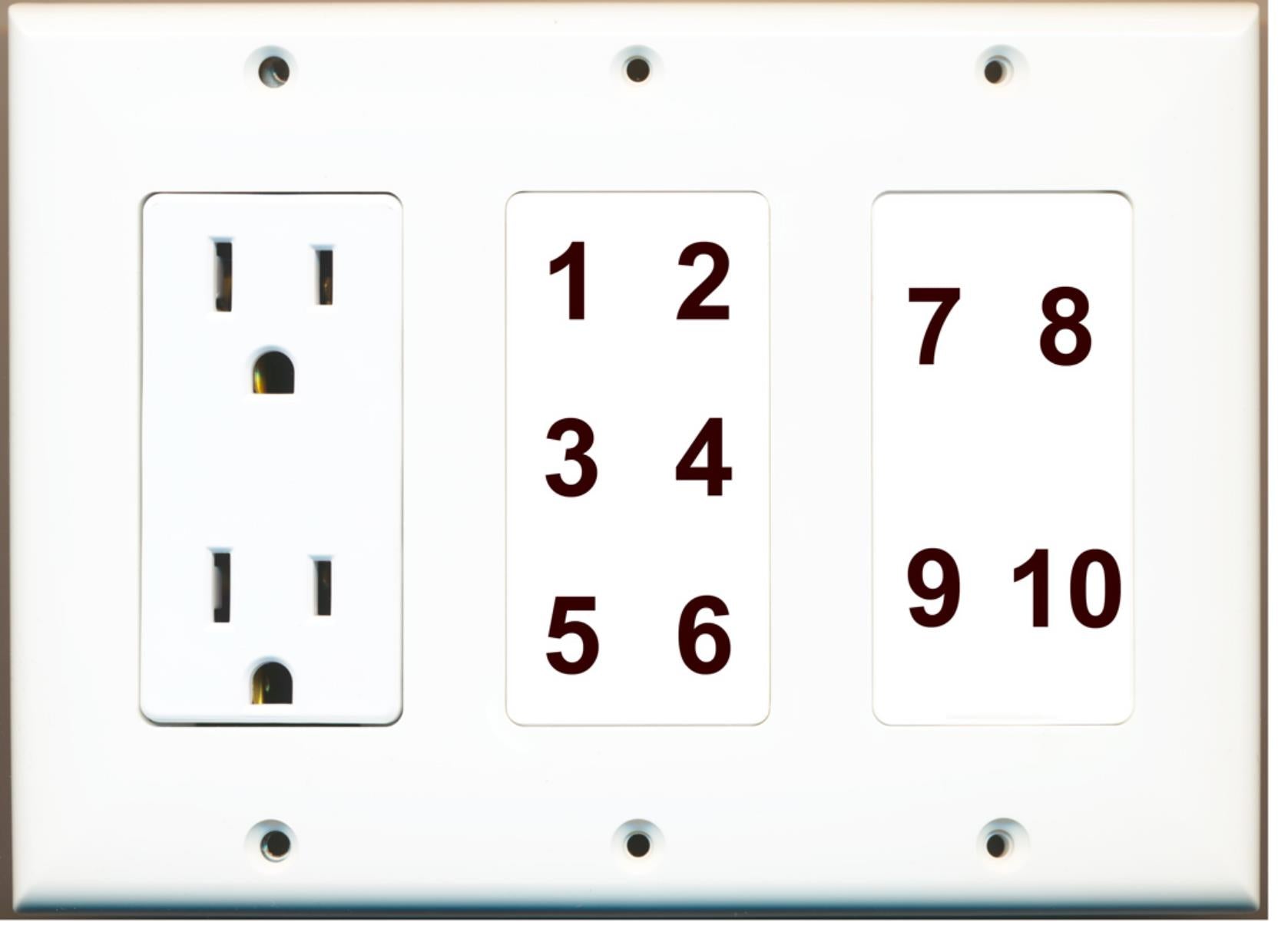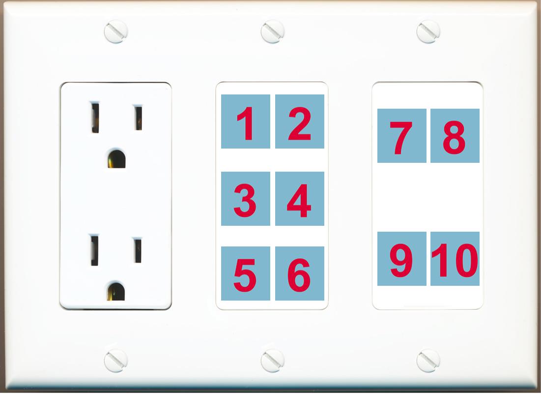 Custom Wall Plate 15 Amp Power Outlet White with up to 10 Keystone Ports