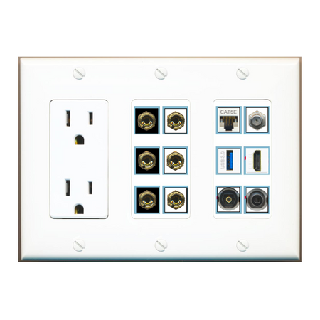 Custom Wall Plate 15 Amp Power Outlet White with up to 12 Keystone Ports