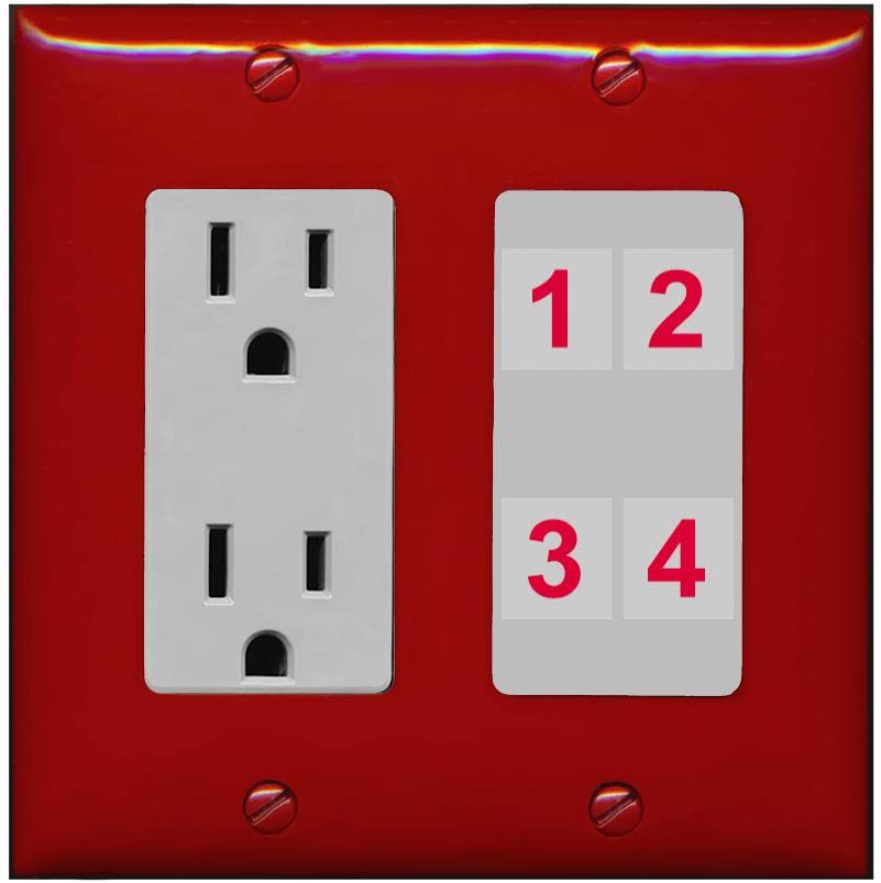 RiteAV Custom 4 Port Custom Wall Plate - Outlet [Red/Gray]