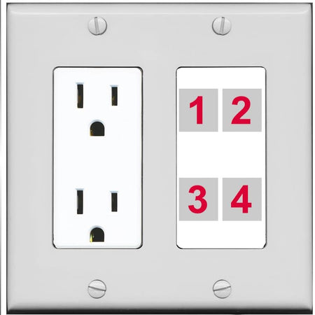 RiteAV Custom 4 Port Custom Wall Plate - Outlet [Gray/White]