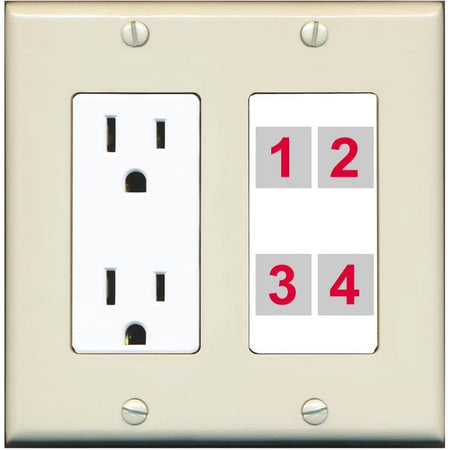 RiteAV Custom 4 Port Custom Wall Plate - Outlet [Light-Almond/White]